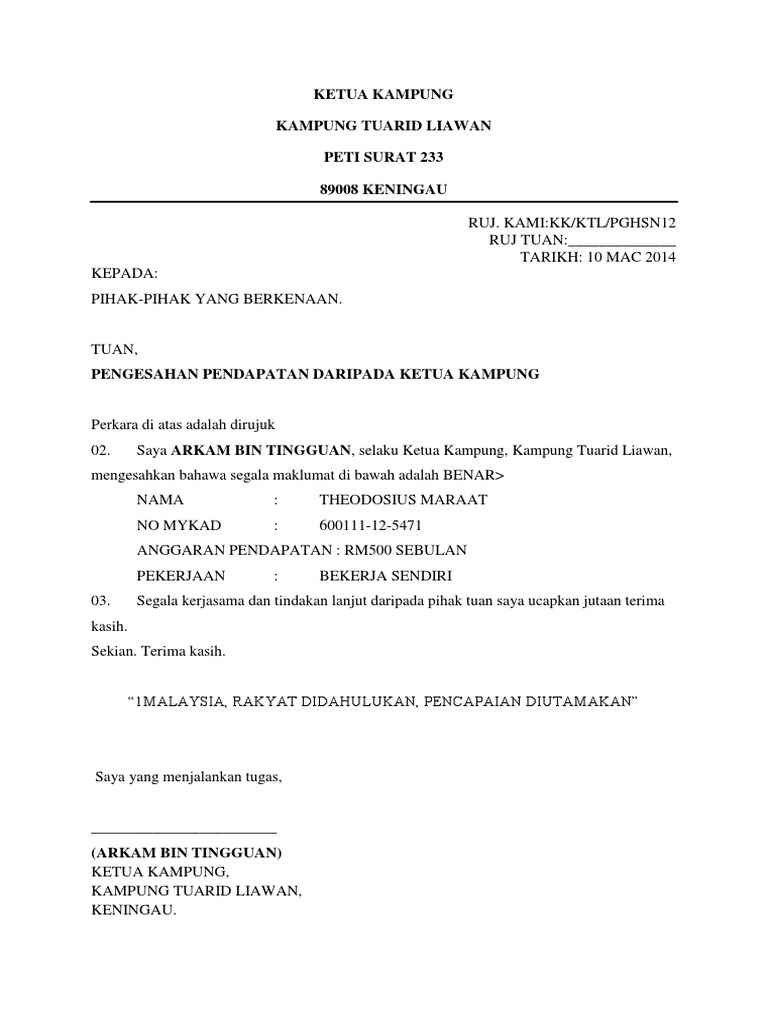 Pengesahan wakil rakyat ketua kampung penghulu majikan. Contoh Surat Akuan Ketua Kampung - Download surat akuan pengesahan pendapatan. ٢٨ ذو الحجة ١٤٤٢ هـ.